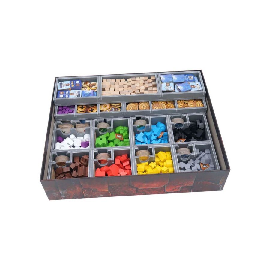 Insert compatible with Age of Innovation. This product is intended for a box size of 36.5 x 30.0 x 8.3 cm. The design provides both efficient storage and improved game play. Many of the trays can be utilized during the game, and they greatly aid set-up and clear-away times. The boards and rulebooks act as a lid on top of the trays.Â