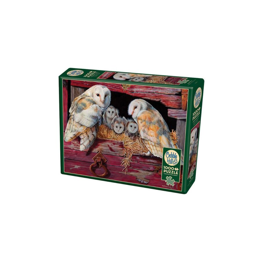 On this puzzle you can admire a whole family of barn owls. The puzzle consists of 1000 pieces and has a size of 67 x 49 cm.