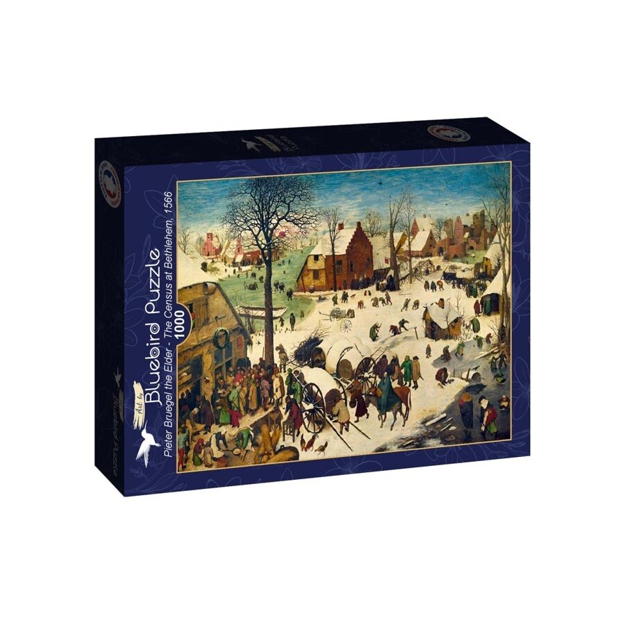 This is a jigsaw puzzle after the work 'The Census at Bethlehem, 1566' by Pieter Brueghel the Elder. The puzzle consists of 1000 pieces and measures +/- 68 x 48 cm.