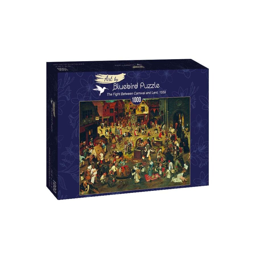 This jigsaw puzzle, after the work 'The Fight Between Carnival and Lent' by Pieter Breughel the Elder, consists of 1000 puzzle pieces. The dimensions of this art puzzle are 68 x 48 cm.