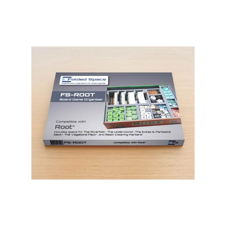 Insert compatible with Root, and The Riverfolk, The Underworld, The Exiles & Partisans Deck, The Vagabond Pack and Resin Clearing Markers.