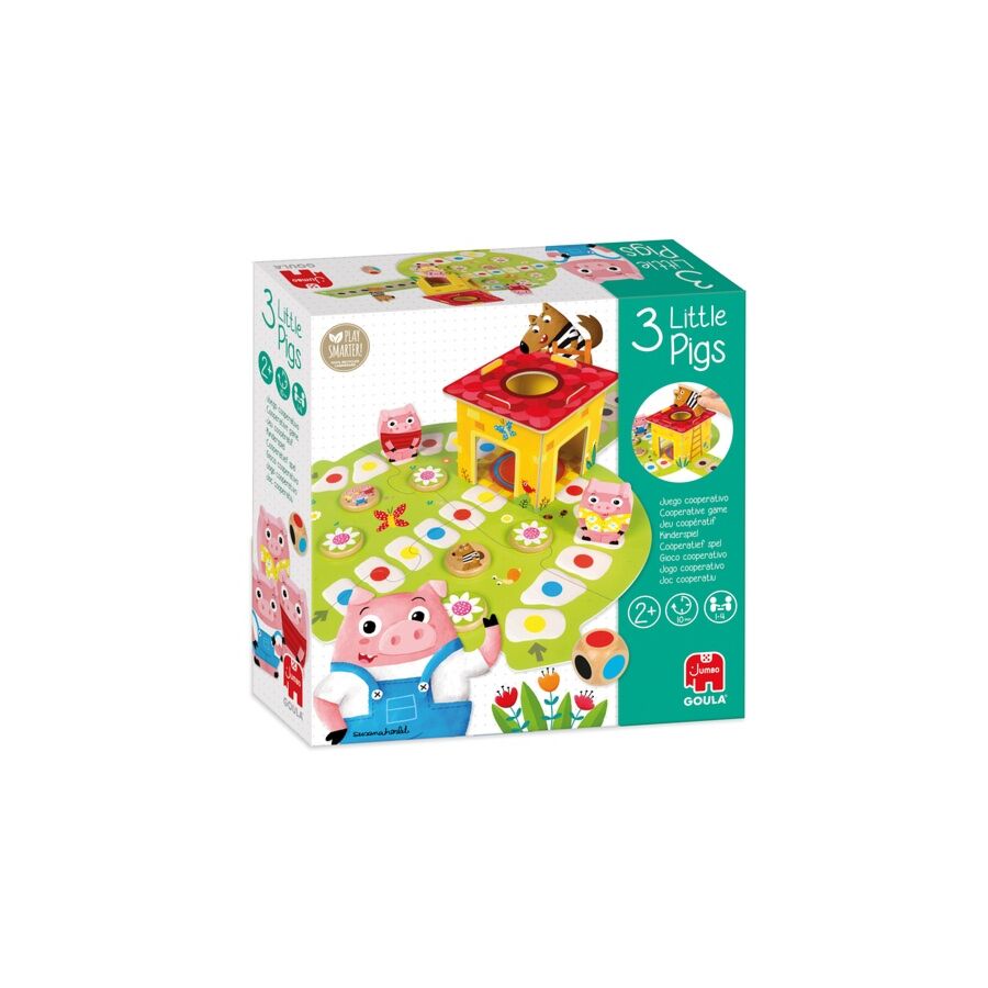 Ce jeu de société éducatif est destiné aux enfants de 2 ans et plus. Il s'inspire du célèbre conte pour enfants des Trois Petits Cochons.