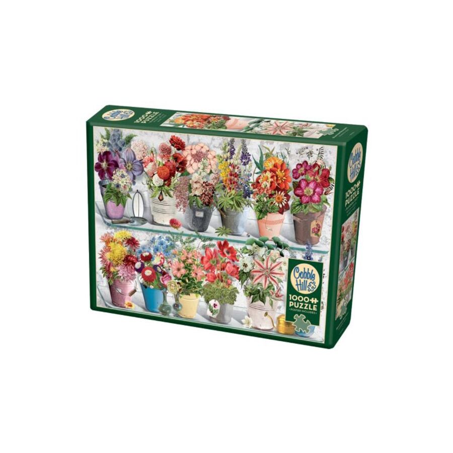Il s'agit d'un puzzle de fleurs de 1000 pièces. L'image montre des bouquets colorés côte à côte. Les bouquets étaient placés dans des pots en fer blanc. On dirait que le jardinier a été occupé ! L'image du puzzle a été créée par Barbara Behr.