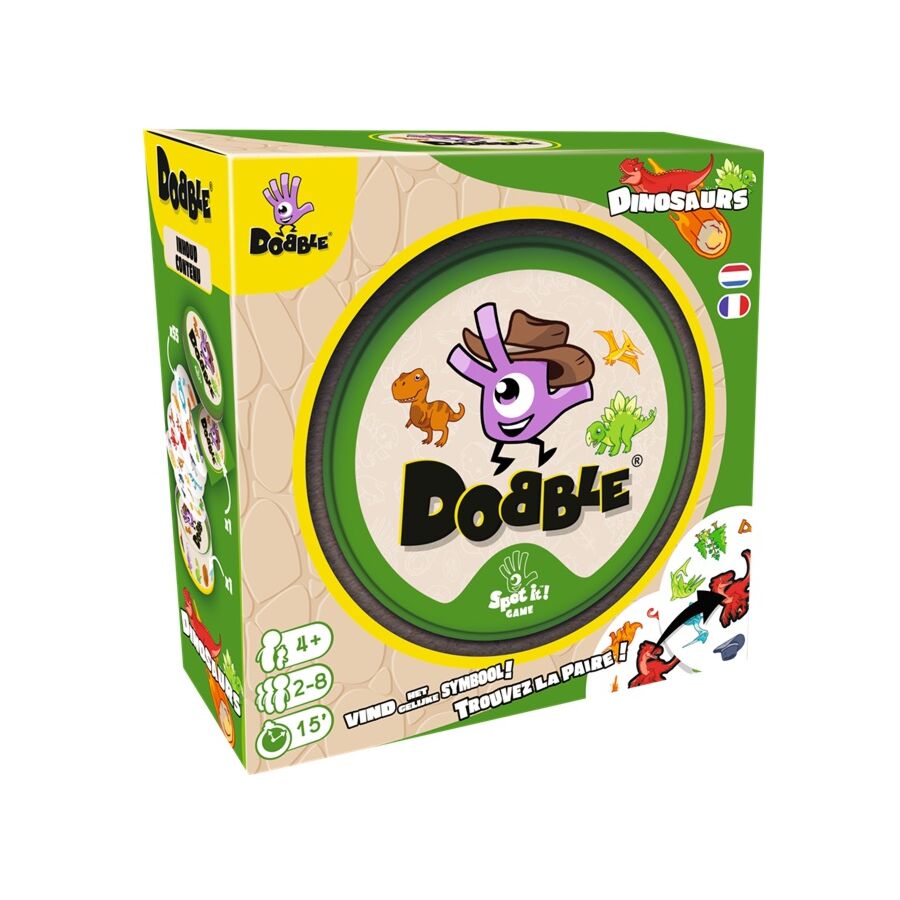Dans le jeu Dobble Dinosaur, deux cartes illustrées sont placées face visible afin que tout le monde puisse les voir. Les joueurs tentent de retrouver la même image sur les deux cartes le plus rapidement possible. Il n'y a qu'une seule bonne réponse à la fois.