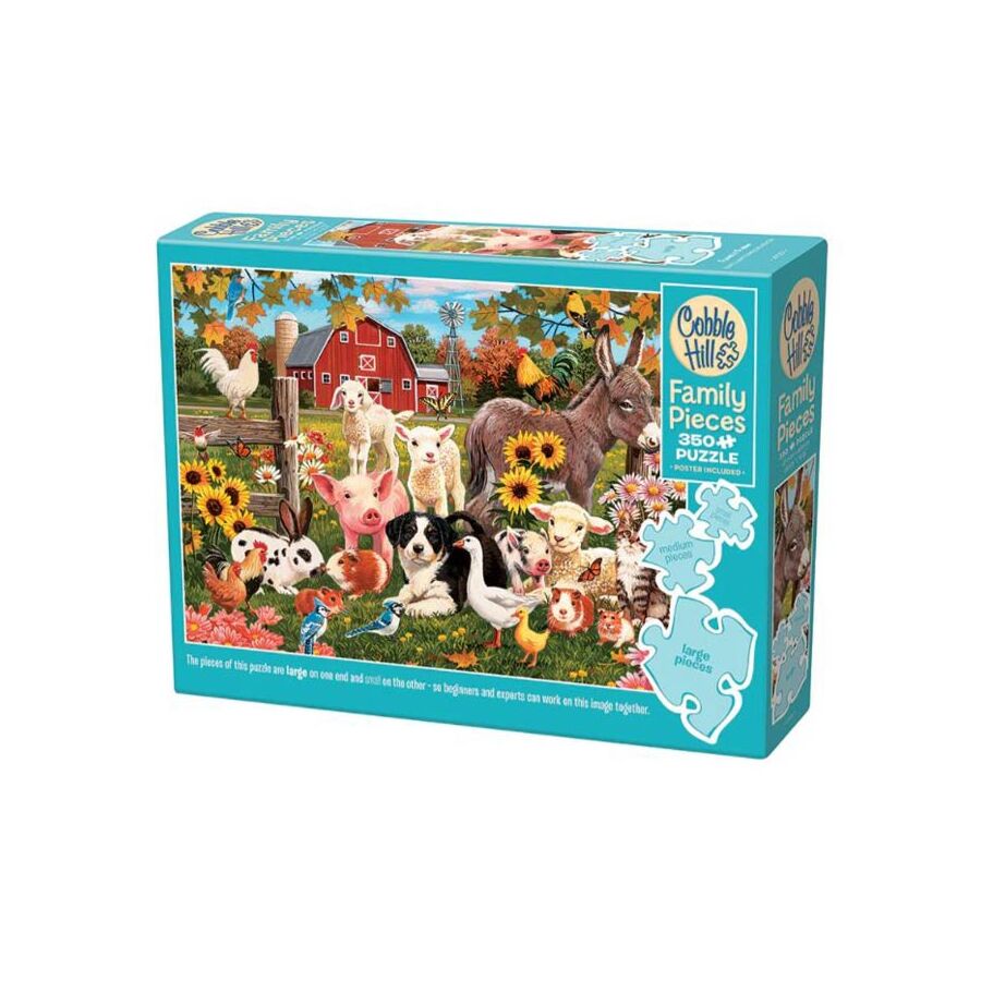 Le puzzle Family Farm se compose de 350 pièces et a une taille de +/- 49 x 67 cm.