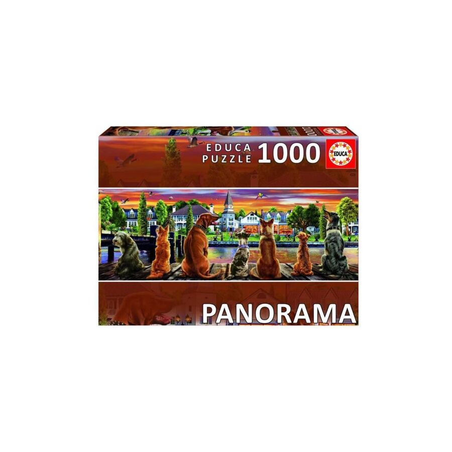 L'image de ce puzzle Educa montre 7 chiens d'affilée. Il s'agit d'un puzzle panoramique d'une taille de 96 x 34 cm.