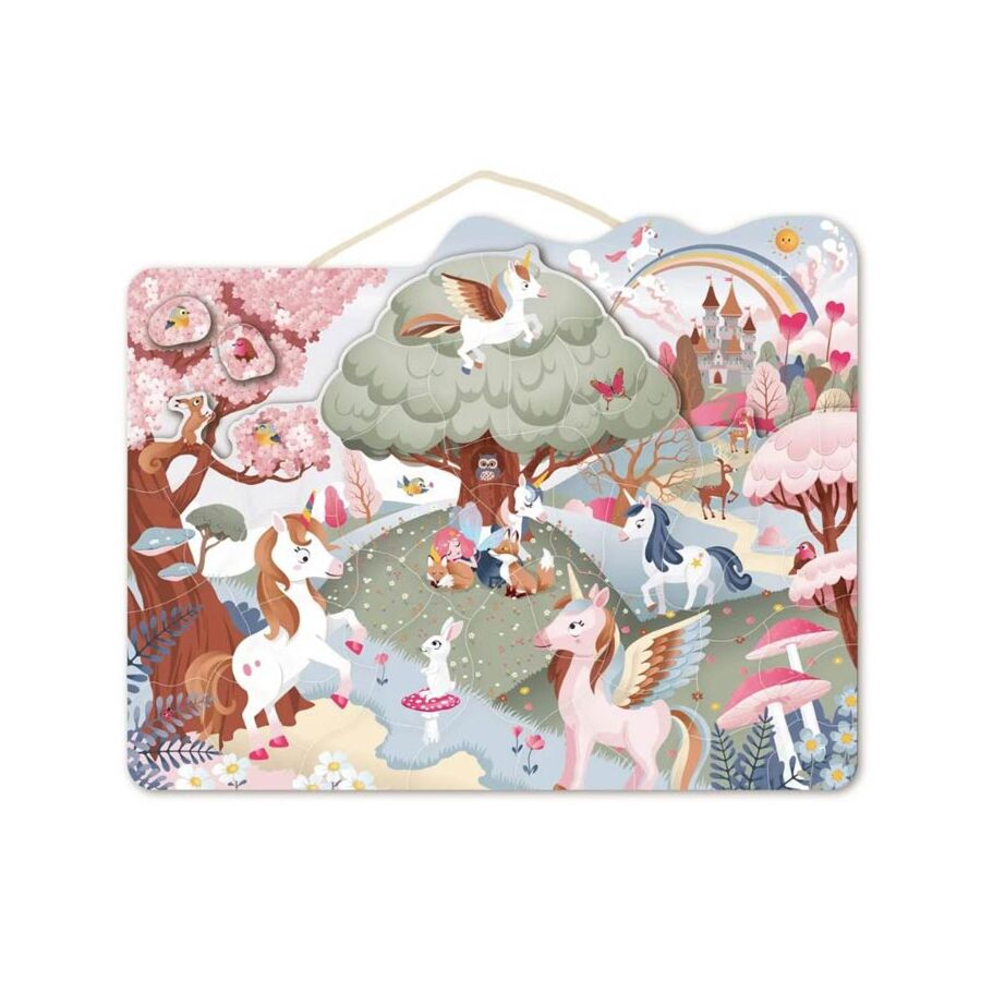 Ce puzzle licorne magnétique en bois de la marque Speedy Monkey a une taille de 42 x 33 x 1 cm.