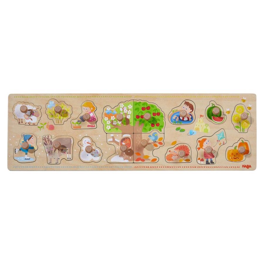 Ce puzzle permet aux plus petits de comprendre les 4 saisons. Les illustrations leur montrent ce qui se passe au printemps, à l'été, à l'automne et en hiver. Avec des boutons pour que les pièces de puzzle soient faciles à saisir par les petites mains.