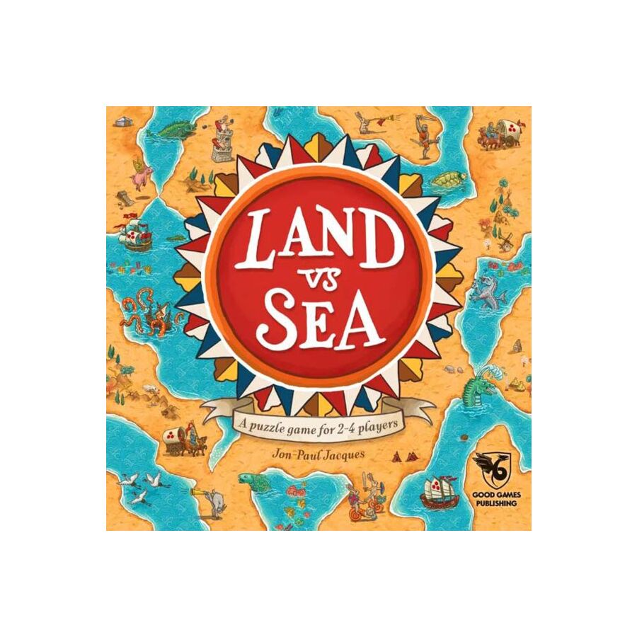 Land vs Sea est un jeu de pose. Les joueurs jouent avec des tuiles hexagonales double face avec des formes de mer et de terre. À tour de rôle, ils placent une tuile pour créer une grande carte.