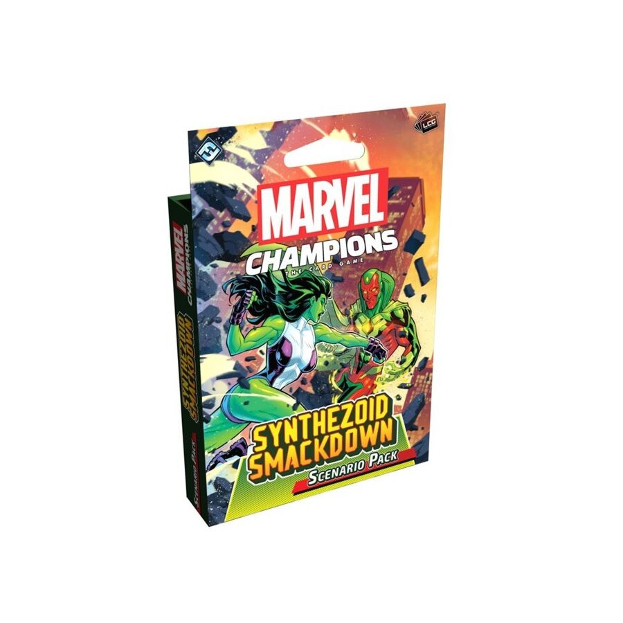 Introducing Synthezoid Smackdown, the latest scenario pack for Marvel Champions: The Card Game! This pack includes two brand-new, customizable scenarios featuring She-Hulk and Vision, two heroic leaders clashing over their conflicting ideals. This extra-large, 90-card scenario pack comes with eight modular encounter sets (four for registration, four for resistance) that can be mixed and matched with those from the Civil War expansion for further customizing options. Also included are rules and cards for an optional competitive mode in which players team up with their own leader and race to be the first to defeat the opposing team’s leader.
