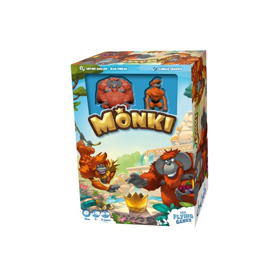 Le jeu Monki est destiné à 2 joueurs à partir de 7 ans. Une partie dure environ 15 minutes. Le jeu contient 2 beaux singes en plastique. Le sentiment incessant que vous ressentez lorsque vous retournez les jetons rend le jeu très excitant.