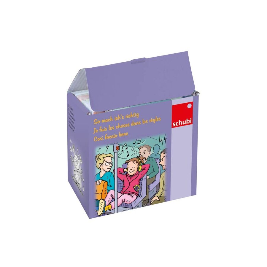Les scènes servent d’amorce de conversation et favorisent la liberté d’expression et la narration. Les enfants peuvent expliquer ce qui ne va pas sur les cartes supplémentaires avec le comportement socialement indésirable. Ils peuvent alors s’identifier aux personnes qui agissent correctement.