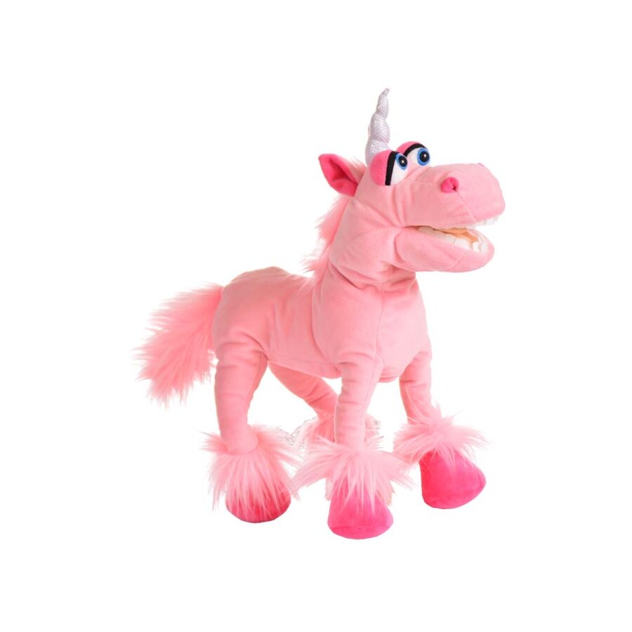 Cette marionnette à main d'une licorne a une taille de +/- 41 cm.