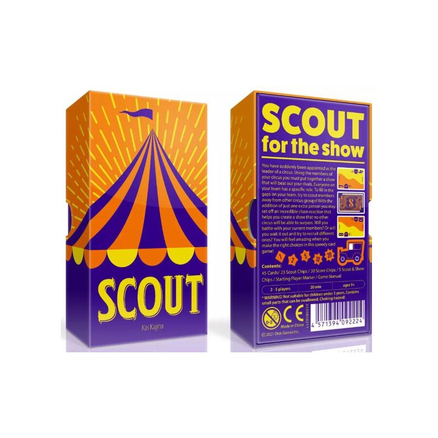 Dans le jeu de cartes Scout, vous affrontez votre compagnie de cirque pour organiser les meilleurs spectacles. De temps en temps, vous espionnez les voisins et découvrez leurs talents par vous-même.