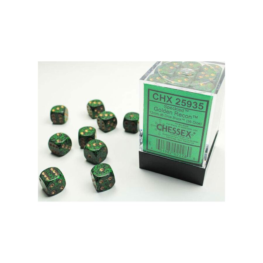 Speckled 12mm D6 dice GOLDEN RECON (36 dice)