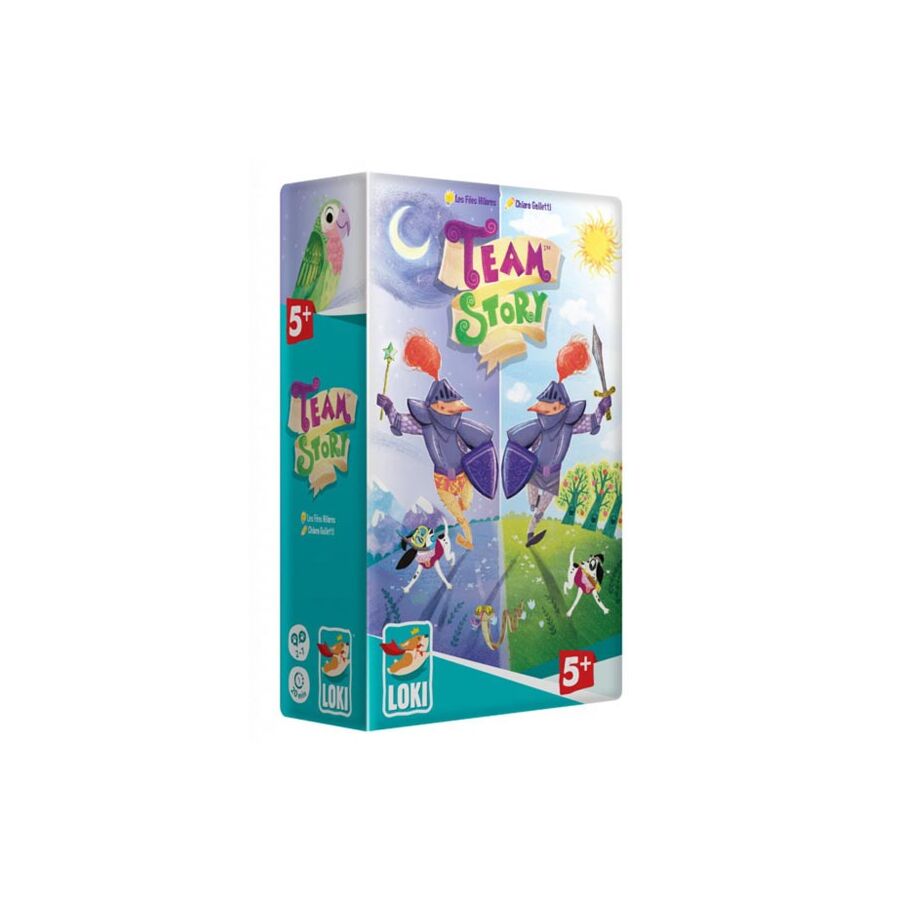 Dans le jeu Team Story, le conteur raconte une histoire belle/excitante/drôle. Il peut en choisir un dans le manuel du jeu ou il peut créer le sien en utilisant les images sur les cartes. Les autres joueurs écoutent d'abord attentivement. A la fin de l'histoire, les cartes sont mélangées. Le but du jeu est avant tout de trouver les bonnes images et aussi de les placer dans le bon ordre.