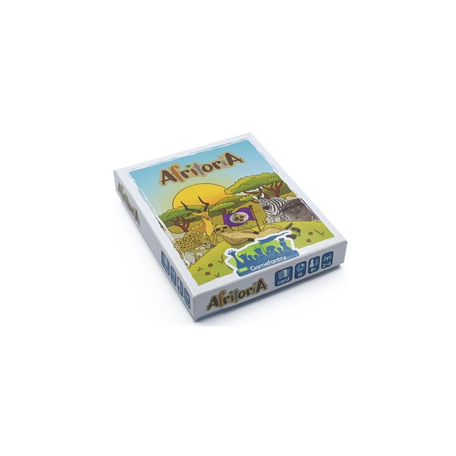 Het spel Afritoria van het merk Gamefantry bevat 96 kaarten en spelregels.