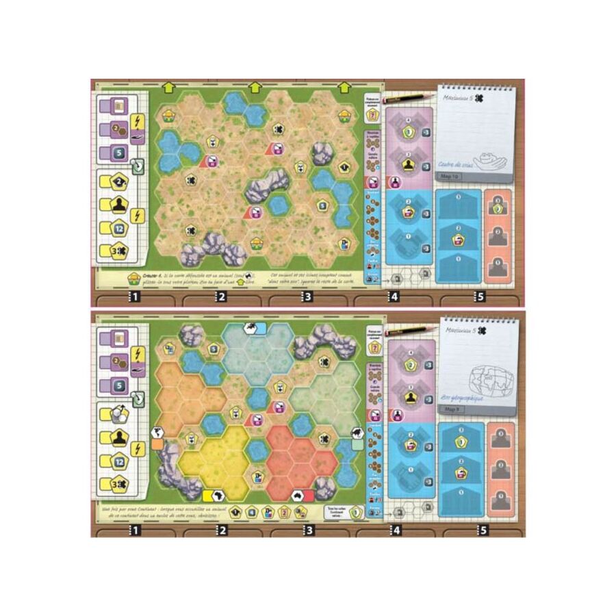 Ark Nova Dierentuinplattegrond SET 1 bevat 2 nieuwe spelersborden: #9 Geografische dierentuin en #10 Dierenopvang.