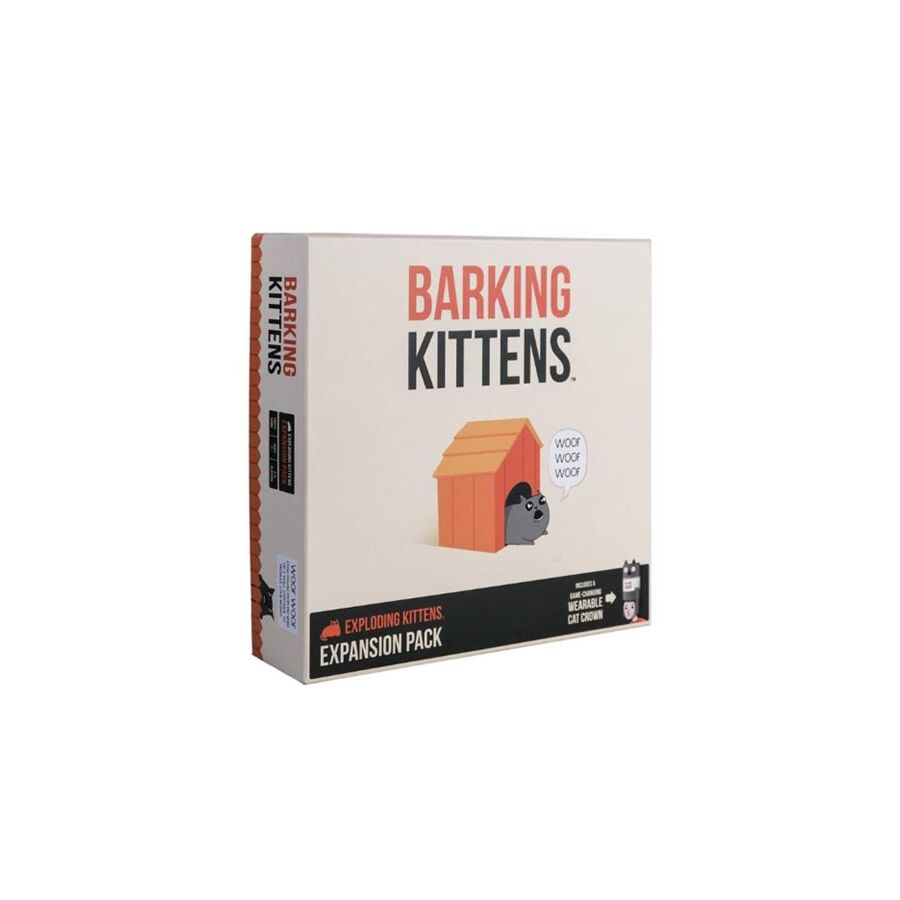 Barking Kittens is een uitbreiding voor het recordbrekende kaartspel Exploding Kittens. Barking Kittens bevat 20 kaarten en nieuwe instructies die zorgen voor extra strategie en hilariteit. Erg leuk is het bijvoorbeeld dat er Barking Kittens-kaarten zijn waarmee spelers hun handen kunnen combineren. Barking Kittens bevat ook een hoed die een speler beschermt tegen het stelen van kaarten.