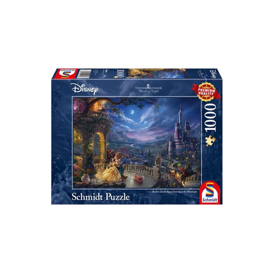 Dit is een Disney puzzel met een afbeelding van Belle en het beest, samen dansend in het maanlicht. De afbeelding is een kunstwerk van Thomas Kinkade. Deze puzzel bestaat uit 1000 stukken.