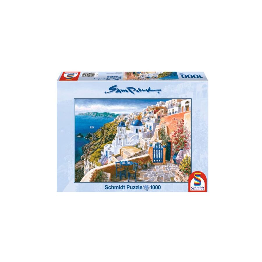Blik op Santorini is een puzzel met een afbeelding van de kunstenaar Sam Park. Deze legpuzzel bestaat uit 1000 stukjes.