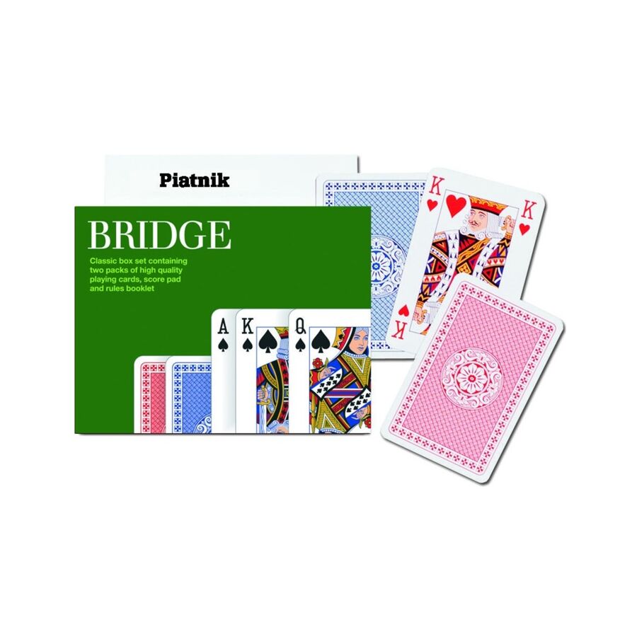 Deze Bridge speelkaarten set is de ideale keuze voor zowel beginnende als ervaren bridgers. De set bevat twee hoogwaardige kaartspellen, een handig scoreblok en een duidelijke handleiding met de spelregels van Bridge. Alles wat je nodig hebt om direct aan tafel te schuiven voor een avond vol strategie, samenwerking en spanning.