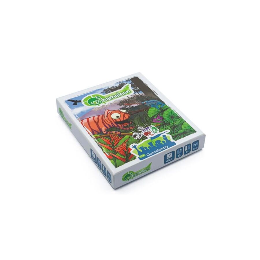 In het dobbelspel Chameleon kruipt iedere speler in de huid van een verkleurende kameleon. De kameleons gaan de strijd met elkaar aan om te kijken wie van hen de beste jager is. Ze moeten wel goed opletten voor de overvliegende arenden, want die lusten maar al te graag kameleons!