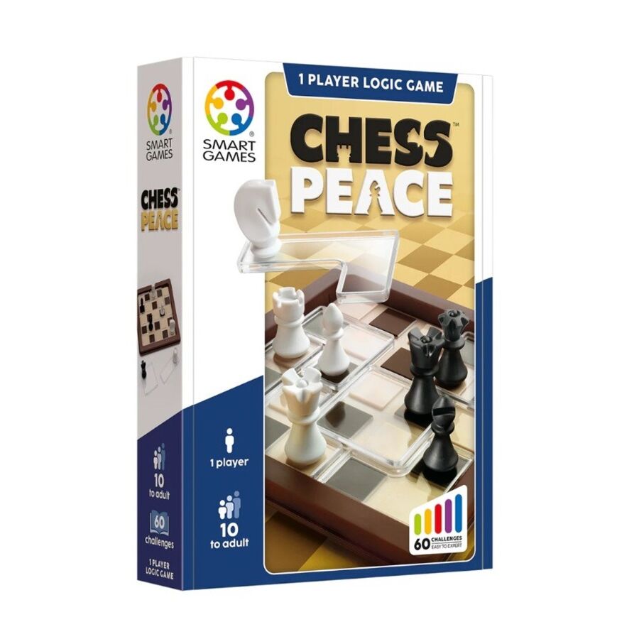 Ontdek een nieuwe manier van schaken met Chess Peace van SmartGames! In dit unieke denkspel draait alles om balans: plaats de stukken zo op het bord dat zwart en wit elkaar niet aanvallen. Geen klassieke partij, maar uitdagende puzzels die je strategisch inzicht op de proef stellen.
