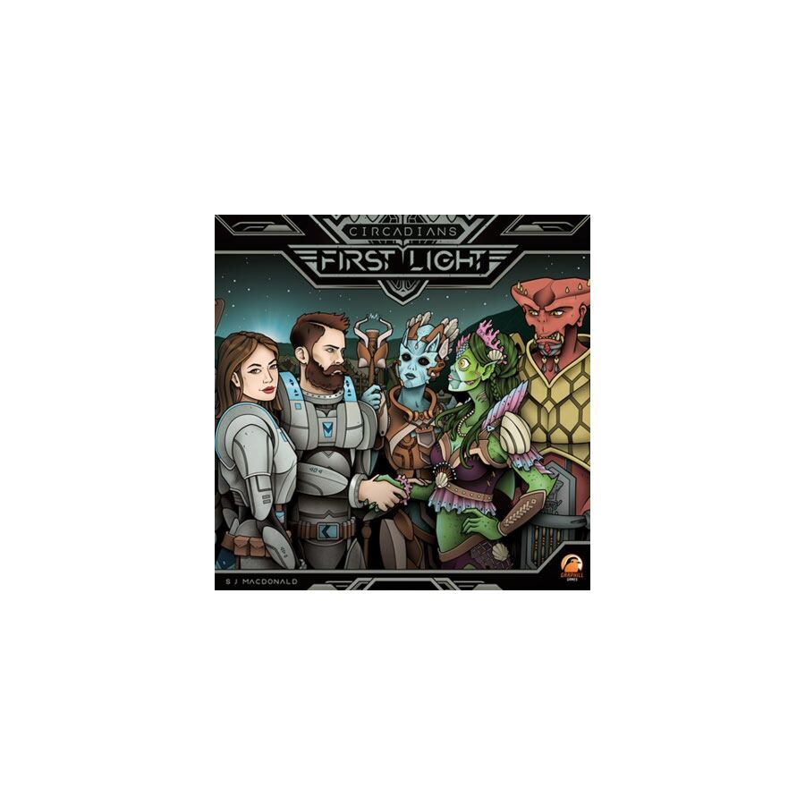 The aim of te game Circadians: First Light is to lead a team of researchers on the planet of Ryh. Players need to manage their crew (dice) to visit various parts of the planet for trade, farming, construction and research. Players score points for negotiating with the locals, harvesting resources for the depository, upgrading their research base, exploring the planet, and collecting gems. The game is played over eight rounds. At the end of the final round, the player with the most points wins!
