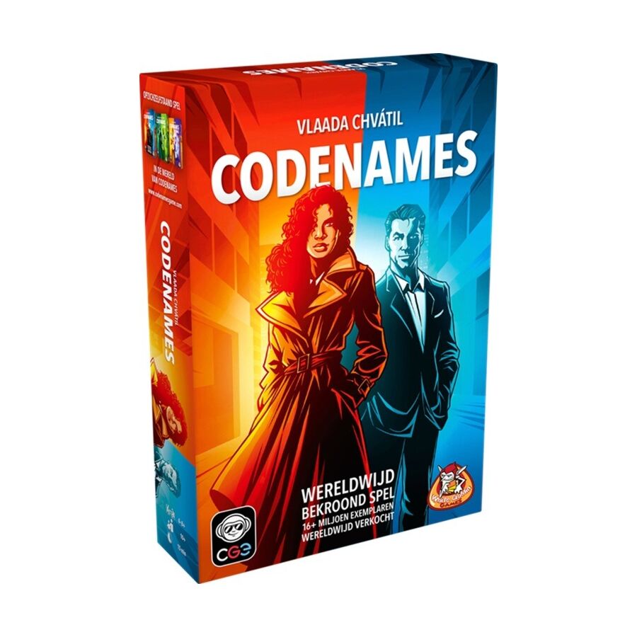 In het partyspel Codenames van White Goblin Games kennen twee rivaliserende geheime diensten de identiteit van de 25 spionnen. Hun teamgenoten kennen deze spionnen enkel bij hun codenaam. Beide teams gaan met elkaar de strijd aan en proberen als eerste contact te leggen met hun spionnen. Ieder hoofd van de geheime dienst geeft aanwijzingen door één ding te noemen dat van betrekking is op meerdere woorden op tafel. Zijn teamgenoten proberen de woorden van hun kleur te raden zonder daarbij spionnen van de tegenstander aan te wijzen. Het is ook belangrijk om uit de buurt van de huurmoordenaar te blijven!