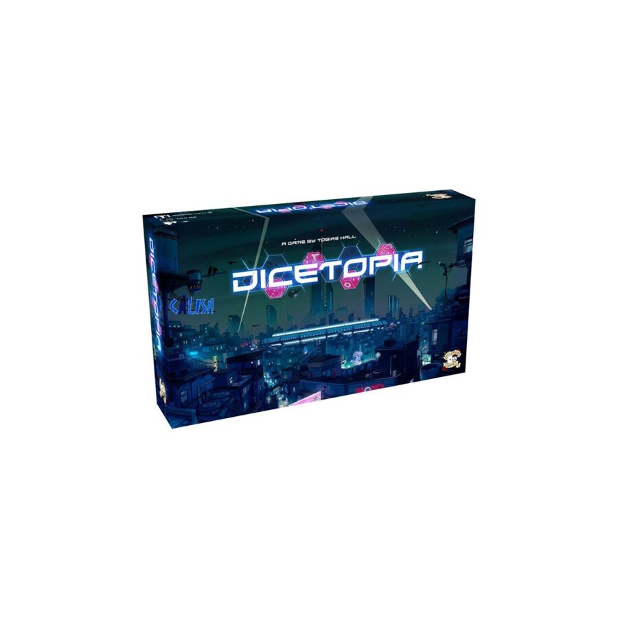 Dicetopia is a quick strategic board game for 2-4 players with a playtime of 20-30 minutes. The game introduces a fresh mix of area control, dice manipulation, worker placement, and secret objectives. On a player's turn, they send out one of their agents to a neighborhood in the city. This single move determine the resource they'll collect, their control of that neighborhood, and what action they'll perform. When all agents has been deployed after six rounds, the ultimate goal is to score the highest points based on the neighborhoods players dominates, the die resources they have, and their secret missions.