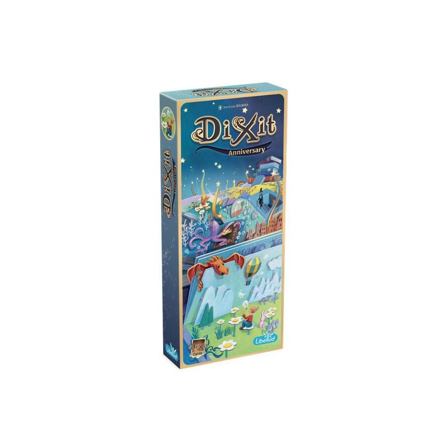 Dixit Anniversary bevat 84 nieuwe kaarten om meer afwisseling te krijgen in het spel. Voor de illustraties van Dixit Anniversary werd een beroep gedaan op alle tekenaars van de voorgaande Dixit uitbreidingen. Bereid je dus voor op een nieuwe onvergetelijke reis!
