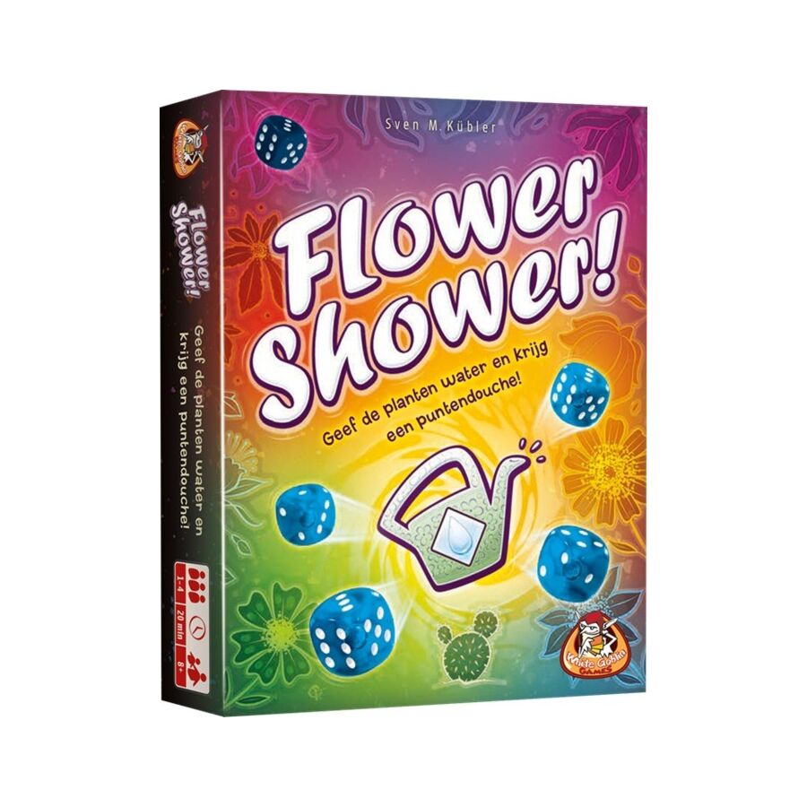 Flower Shower is een vrolijk en toegankelijk dobbelspel van White Goblin Games waarin iedere speler zijn eigen tuin zo slim mogelijk probeert te bewateren. Rol de dobbelstenen, verdeel het water en zorg ervoor dat jouw bloemen precies krijgen wat ze nodig hebben!