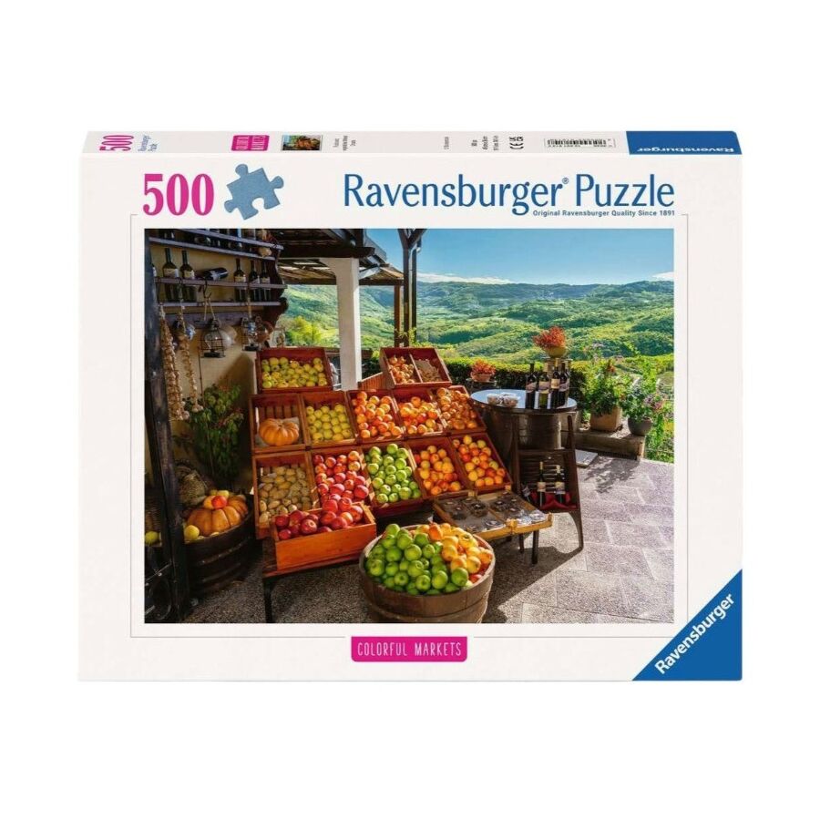 Proef de sfeer van lokale tradities met de levendige “Fruit Market, Croatia” puzzel van Ravensburger. Deze prachtige puzzel van 500 stukjes uit de Colourful Market-reeks toont een bruisende Kroatische markt waar vers fruit en groenten kunstig zijn uitgestald in rustieke houten kratten.