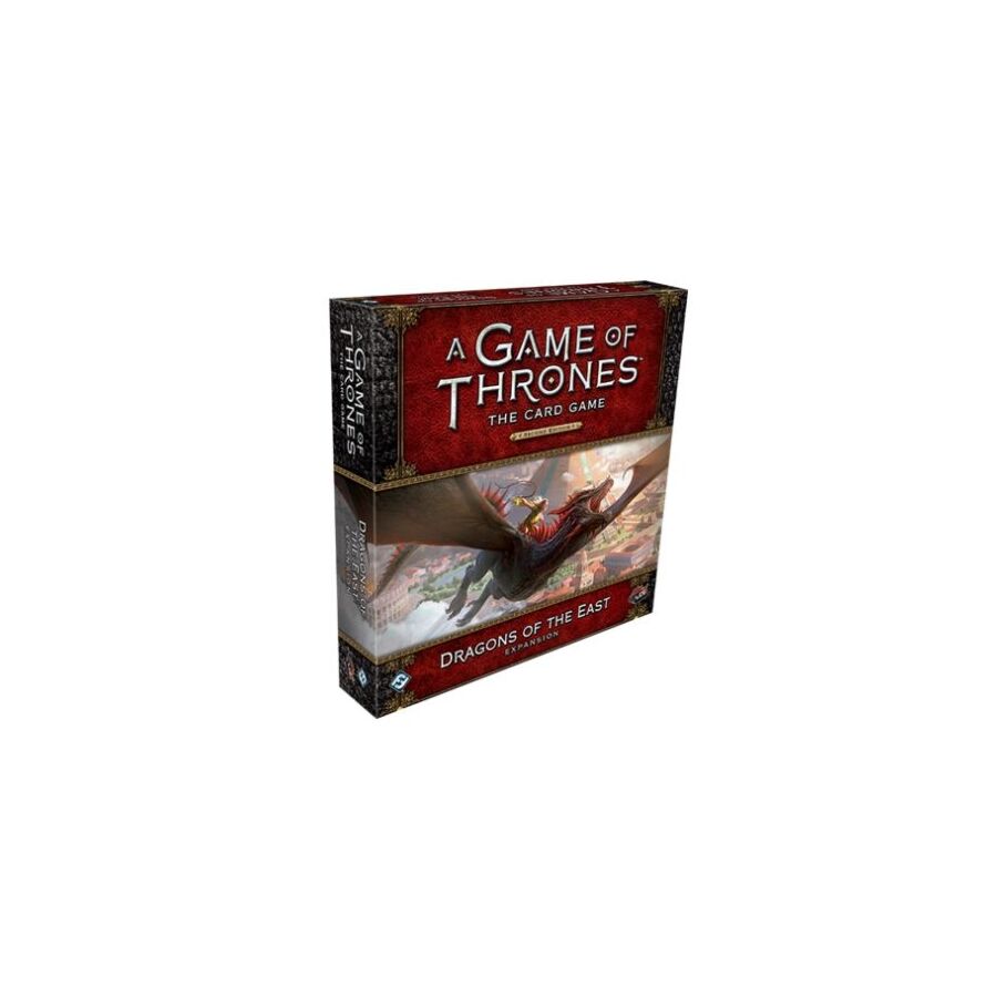 Game of Thrones: Dragons of the East is a Deluxe expansion for A Game of Thrones Card Game. In the game the House Targaryen rises to the fore with new versions of their most iconic characters, including Daenerys Targaryen, Khal Drogo, and three terrifying, fully grown dragons. Of course, every other faction also receives two new non-loyal cards to swell their forces and help them explore new strategies against the Targaryens. With a wealth of neutral cards and plots rounding out the expansion, every faction has good reason to explore what awaits in Dragons of the East.