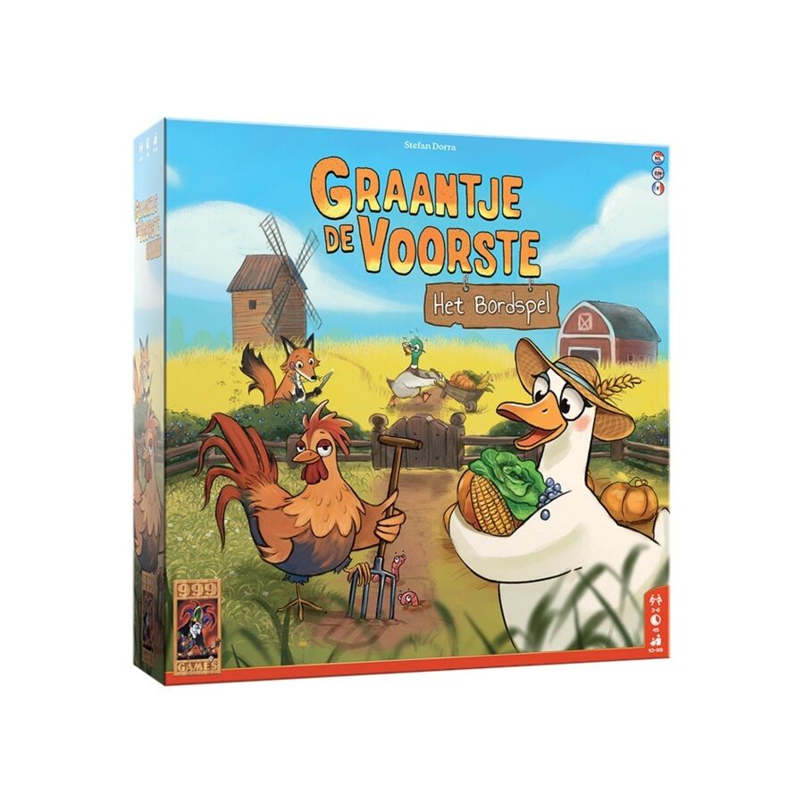 Er heerst complete chaos op de boerderijen! In Graantje De Voorste: Het Bordspel van 999 Games nemen losgebroken kippen het op tegen elkaar in een vrolijke, maar spannende strijd om het lekkerste voedsel te verzamelen. Maar pas op… de hongerige vos ligt op de loer en kan je plannen in één klap verpesten!