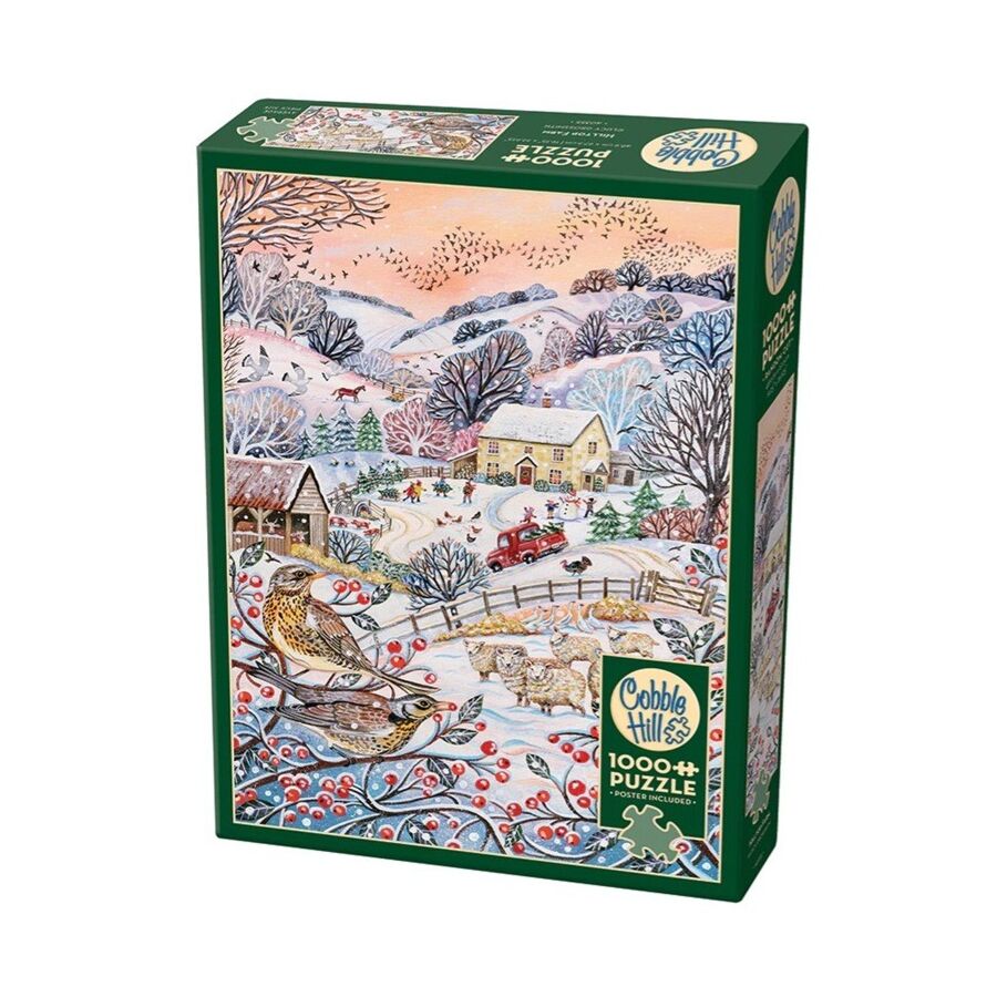 Breng de magie van het platteland in huis met Hilltop Farm, een betoverende puzzel van 1000 stukjes. Deze sfeervolle winterwereld vol glooiende heuvels en charmante boerderijen straalt warmte en gezelligheid uit, perfect voor knusse winterdagen.