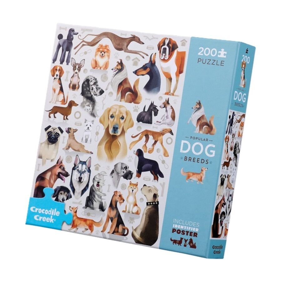De Hondenrassen-puzzel van Crocodile Creek bevat 200 stukjes en toont meer dan 30 populaire hondenrassen in prachtige aquarelstijl. Van kleine Chihuahua’s tot indrukwekkende Duitse Doggen – elke hondenfan zal genieten van het herkennen en samenstellen van deze geliefde viervoeters.