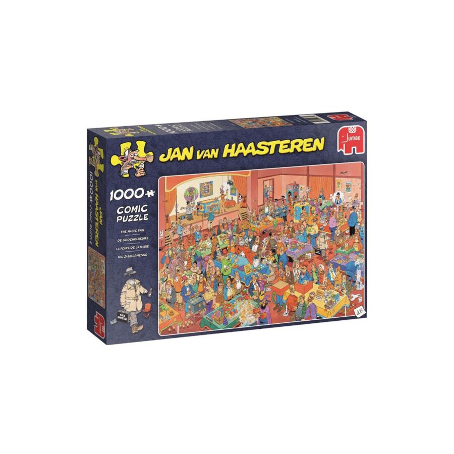 De Goochelbeurs is een typische Jan van Haasteren puzzel: humoristisch, kleurrijk en met veel details. De doorgewinterde fan zal onmiddellijk op zoek gaan naar de haaienvin, Sinterklaas, de handjes, en het kunstgebit.