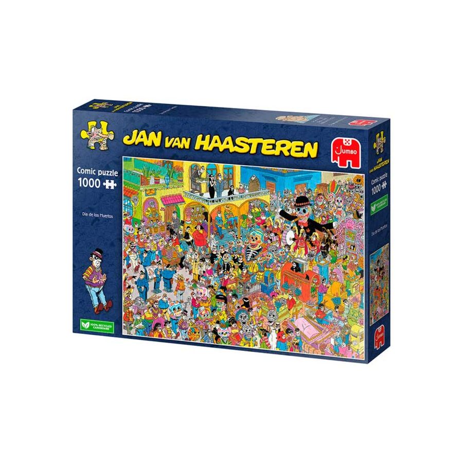 Dia de los Muertos van Jan van Haasteren is een kleurrijke puzzel vol humor. Al puzzelend ontdek je grappige details.
