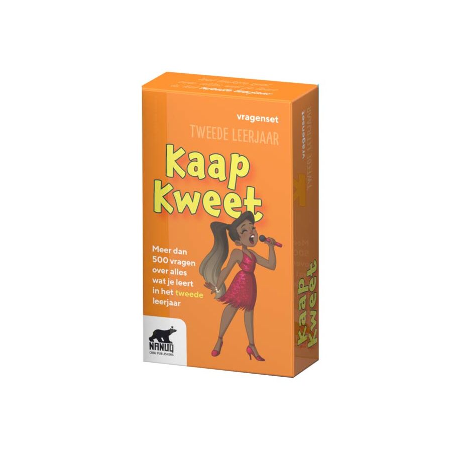 Deze vragenset bevat 87 kaartjes met 520 vragen voor kinderen van het tweede leerjaar. Om het spel te spelen, heb je ook het basisspel Kaap Kweet nodig.