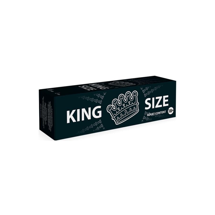 Bij het spel King Size mag iedere speler maximaal 3 keer met de dobbelstenen gooien. Je hebt een eikel en een balzak nodig. Gooi je minimaal 1 balzak én 1 eikel, dan bepaal je de lengte door de waarde op de dobbelstenen op te tellen. Wie 5 hartjes gooit, is slap geworden. Maar wie 6 hartjes gooit, heeft de ware liefde gevonden en wint het spel!