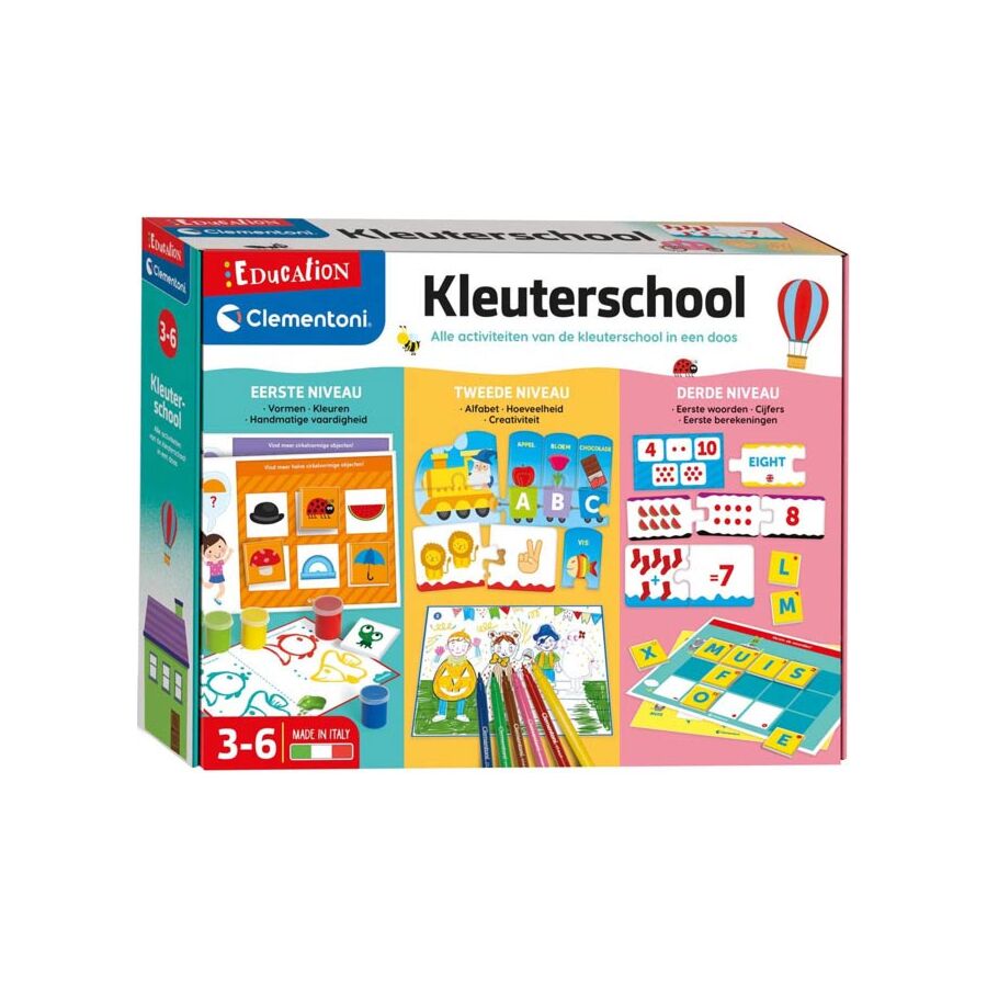 Met deze doos kunnen kleuters al spelend leren. Het Kleuterschool leerspel bevat 12 spelletjes die de cognitieve ontwikkeling van kinderen van 3 tot 6 jaar stimuleert.