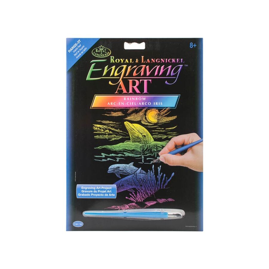 Maak zelf een dolfijnen rif in regenboogkleuren. Kras met de pen over de lijnen. Door de punt te gebruiken, krijg je dunne lijnen. Met de zijkant maak je dikkere lijnen.
