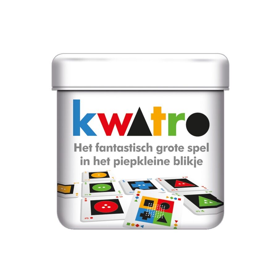 Kwatro is verpakt in fraai blikje en is heel snel te leren én te spelen.