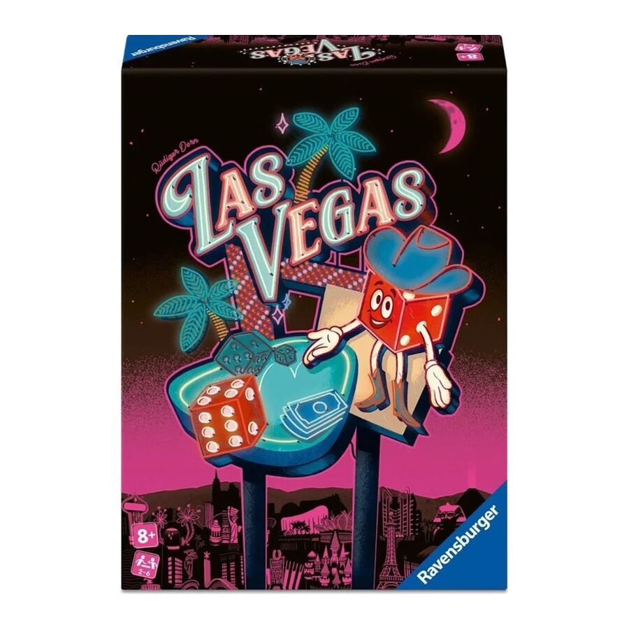 Stap in de kleurrijke, glitterende wereld van Las Vegas van Ravensburger en probeer zo veel mogelijk geld binnen te halen. Bezoek zes verschillende casino's en test je strategie en geluk in dit spannende dobbelspel.