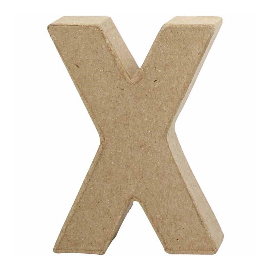 Deze letter X werd handgemaakt met papier-mâché. Je kan ze versieren op een manier naar keuze. Je kan ze bijvoorbeeld verven, bedekken met foam clay en/of er strasstenen opkleven.