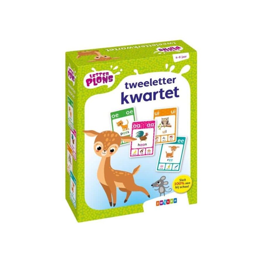 Het Letterplons tweeletter kwartetspel is bedoeld voor kinderen van 4 tot 8 jaar.