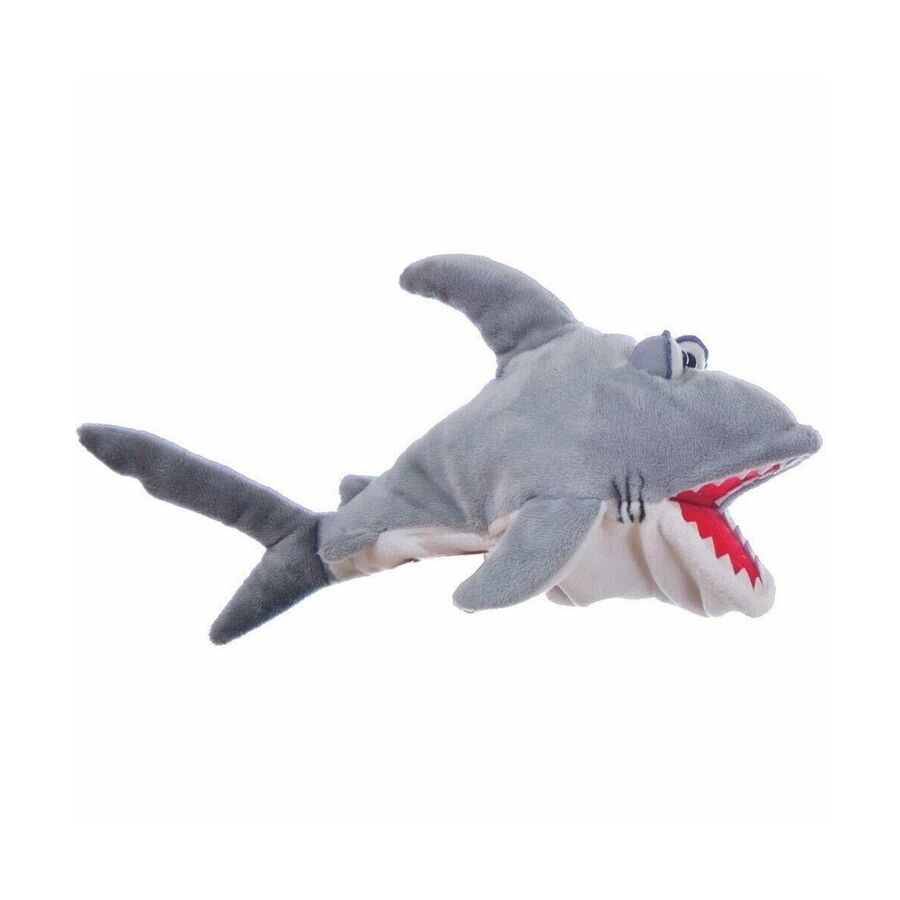 Deze haai van 35,5 cm heeft altijd honger! De handpop heeft een beweegbare bek en kop.