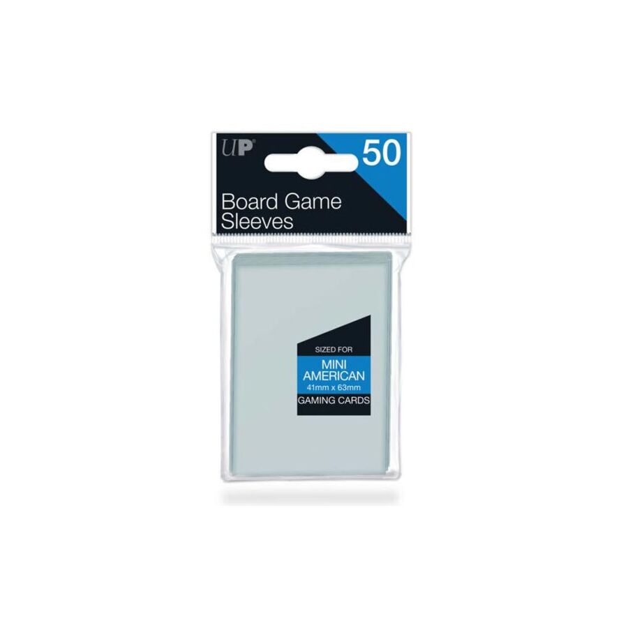 Dit zijn transparante sleeves voor mini American bordspelkaarten (41x63 mm). Een pakje bevat 50 sleeves.